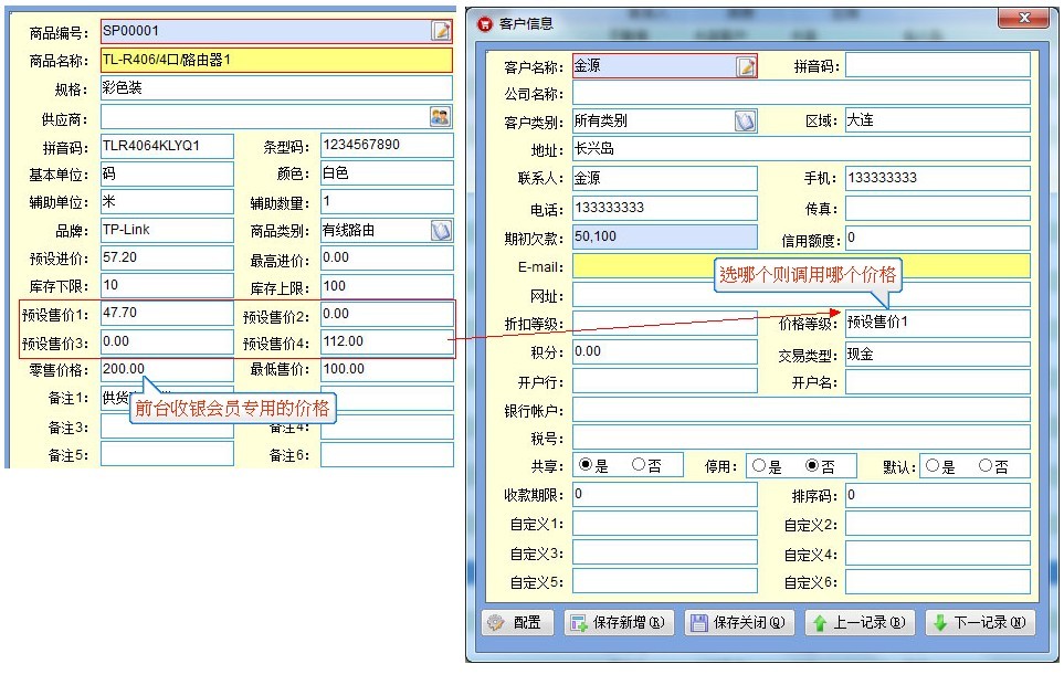 等級價格:則調用商品資料上四個預設價格,客戶資料選哪價格等級則自動調用哪個價格,共有四個價格。